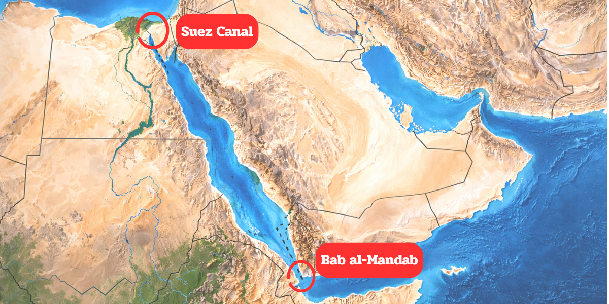 แถลงการณ์จาก Maersk และ Hapag-Lloyd ที่เป็นพันธมิตรกันของบริการ ME11/IMX และ CMA CGM ของระบุว่า เนื่องจากสถานการณ์ความปลอดภัยในตะวันออกกาลางเริ่มแย่ลง ที่เป็นผลมาจากความขัดแย้งทางการทหารที่รุนแรงขึ้น ทำให้ต้องหยุดแผนการการเดินเรือข้ามคลองสุเอซและช่องแคบบาบเอลมันเดบ (Bab al-Mandab)เป็นการชั่วคราว โดยไปอ้อม แหลมกู๊ดโฮปแทน และสายเรือ MSC ระงับการรับ bookings สินค้าจากทั่วโลกที่จะส่งไปยังภูมิภาค Middle East ทั้งหมด